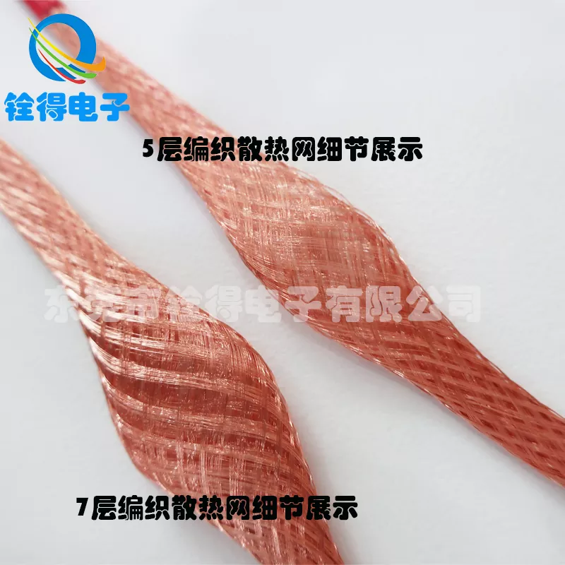 3D -varmedissipasjons flettet kobberbånd brukes ofte i elektronisk utstyr: for eksempel datamaskin -CPU, GPU -radiatorer og varmespredningsmoduler med mobile enheter som mobiltelefoner og nettbrett, som raskt kan utføre varmen som genereres av brikken for å sikre stabil utstyrsytelse.